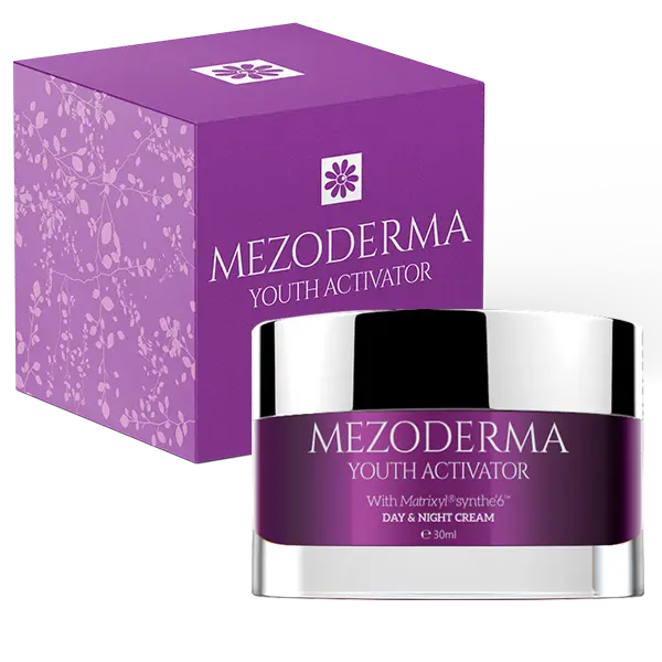 A MEZODERMA YOUTH ACTIVATOR formulájában megtalálható a 6 leghatékonyabb (és hipoallergén), tudományosan bizonyítottan öregedésgátló összetevő, amellyel drámai mértékben újíthatja és fiatalíthatja meg bőrét, akár teljesen eltüntetve a ráncokat, feszessé varázsolva a bőrt, és 10-15 évvel megfiatalítva megjelenését, enyhítve a dehidratációtól és elszíntelenedéstől elhasználtnak tűnő bőr benyomását, és ragyogó új bőrt varázsolva egy komplett arc-nyak-dekoltázskezelést követően.